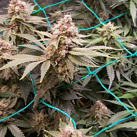Grimm Glue отличается особенно высокой смолистостью: соцветия формируются плотные, тяжёлые и буквально покрытые густым слоем трихом. Это делает сорт привлекательным не только для ценителей аромата и эффекта, но и для тех, кто ищет максимально «липкий», насыщенный по смоле материал с мощным потенциалом.