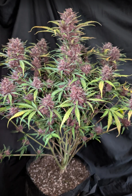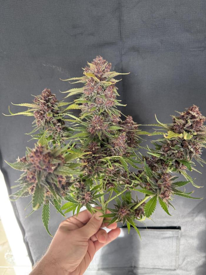 Этот простой в выращивании сорт порадует тебя быстрым ростом, устойчивостью и минимальными требованиями к уходу. Purple Haze Auto не требует сложных техник тренировки и отлично показывает себя даже при базовом подходе. Растение формирует плотные, тяжёлые колы с насыщенной фиолетовой окраской, которая становится особенно выраженной при более прохладных температурах ближе к цветению. Благодаря этому сорт идеально подходит для аутдора в северных регионах, а также для индор-гроверов, использующих LED-освещение и контроль температуры. Несмотря на компактные размеры (60-100 см), Purple Haze Auto демонстрирует отличную урожайность: в закрытом помещении можно получить 400–550 г/м², а в открытом грунте — 50–150 г с растения. Из-за массивных соцветий на поздних стадиях цветения рекомендуется подвязывать ветви, чтобы они не ломались под весом смолистых бутонов.